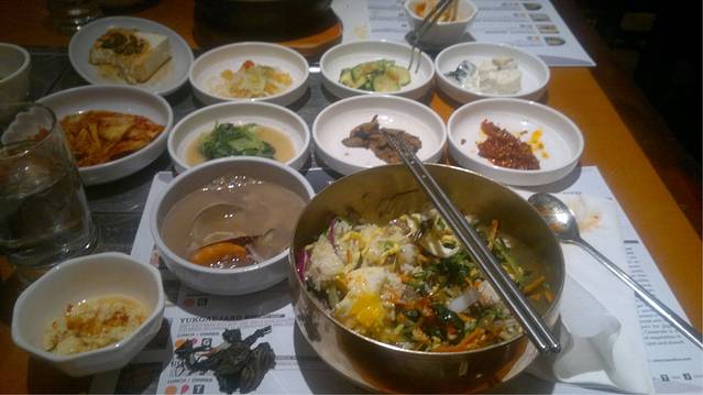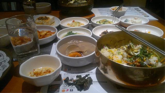 韩国料理 一堆七七八八的其实只有饭和汤是点的 不推荐拌饭 难吃