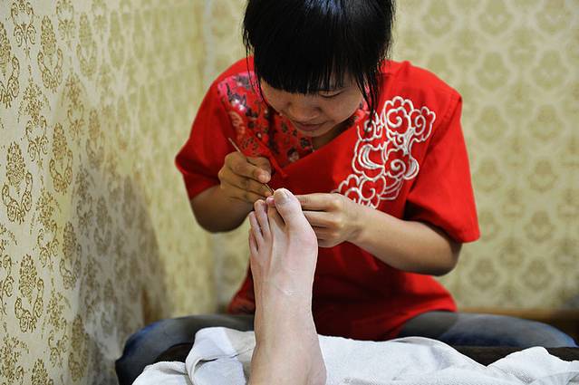 扬州三把刀其中之一就是修脚刀,扬州陆琴脚艺最有名气,但当地人说现在的陆琴修脚师傅都大不如从前了,司机师傅带着我们去了另一家百年老店(下图)