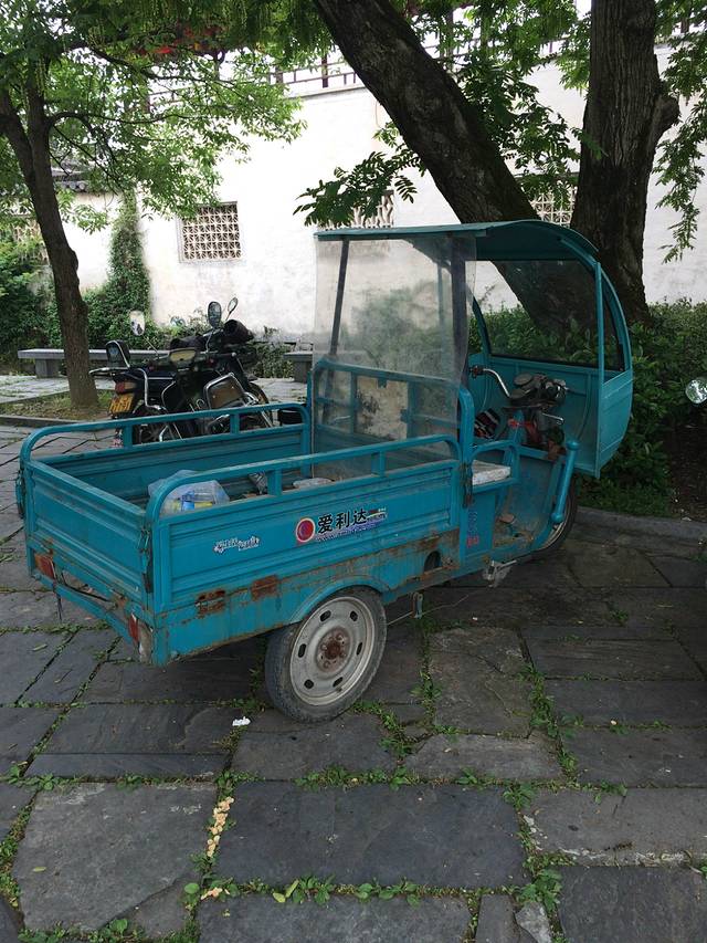 桃花源漂流总体还是不错的,据说是黄山市落差最大的漂流。我是第一次漂流,还比较紧张,所以这种小刺激已经让我感到挺满足的了。这个景点的散客非常少,大多都是带团开大巴来玩的。原因是。。。交通非常不方便!根本没有车可以到,从西递走过去大概1个小时左右。为了不浪费时间,我们选择了下面这个交通工具。。。三轮车。。。就是三个轮子的车。。。