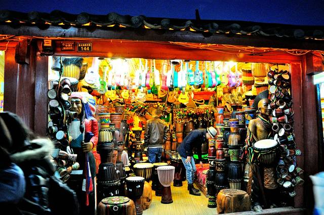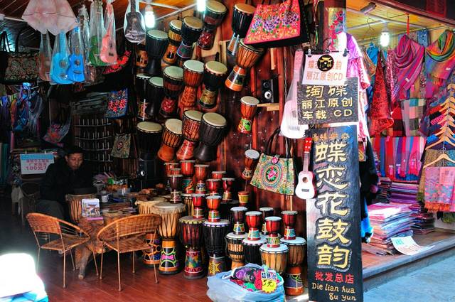 古城中心的四方街了。这里工艺品琳琅满目。人气兴旺。