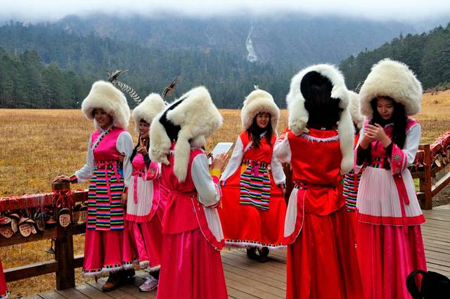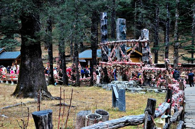 整个雪山集亚热带、温带及寒带的各种自然景观于一身,构成独特的“阳春白雪”主体景观。雨雪新晴之后,雪格外的白,松格外的绿,掩映生态,移步换形,很像是白雪和绿松在捉迷藏。故有“绿雪奇峰”,雪不白而绿,蔚为奇观。 跟团游只坐云杉坪小索道,云杉坪海拔3240米,是纳西族人心中的圣洁之地。