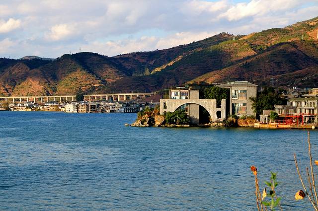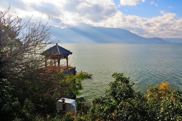 千年古榕枝繁叶茂,幽穴古洞盘曲交错;岛屿四围水清沙白,苍洱百里壮景尽收眼底,可谓"山同人朗,水与情长"。近百亩的海岛面积,静卧在蓝天之下,碧水之中的洱海中上游。