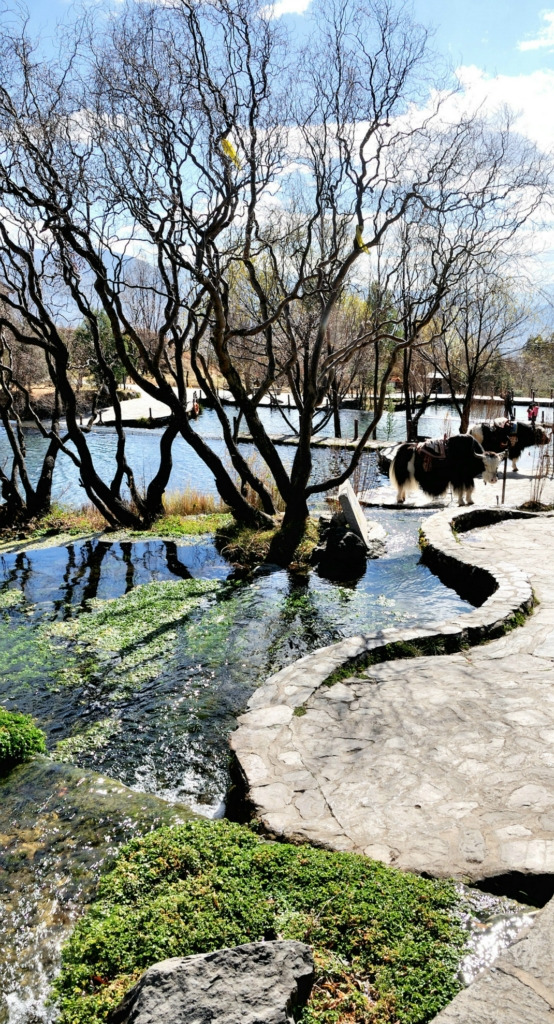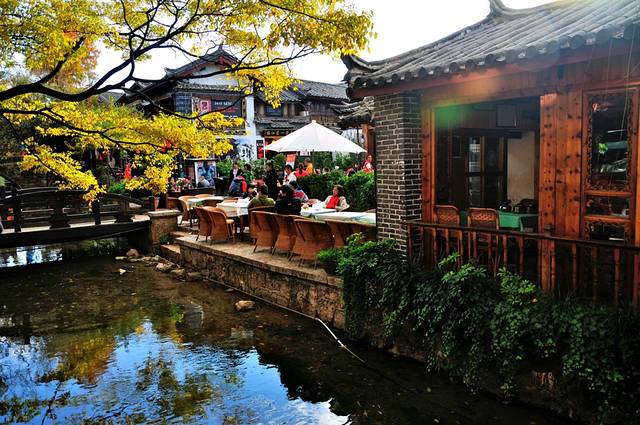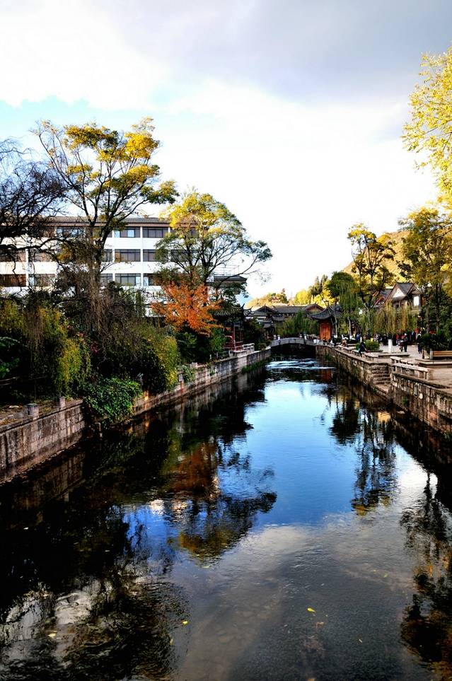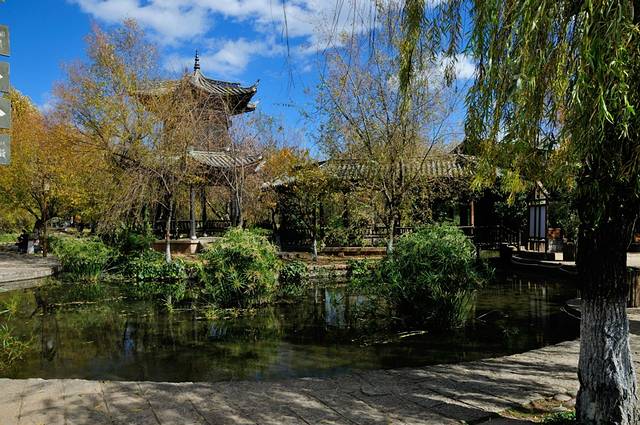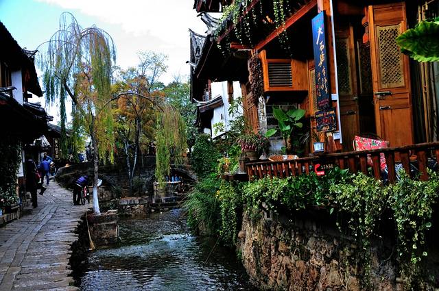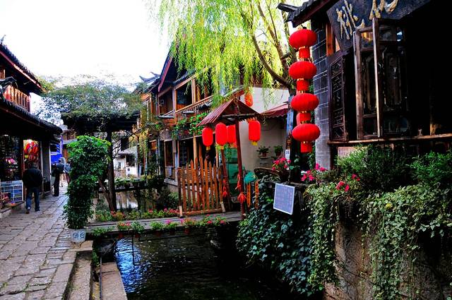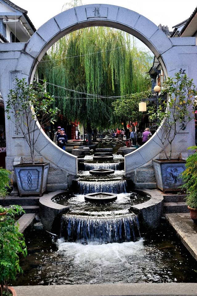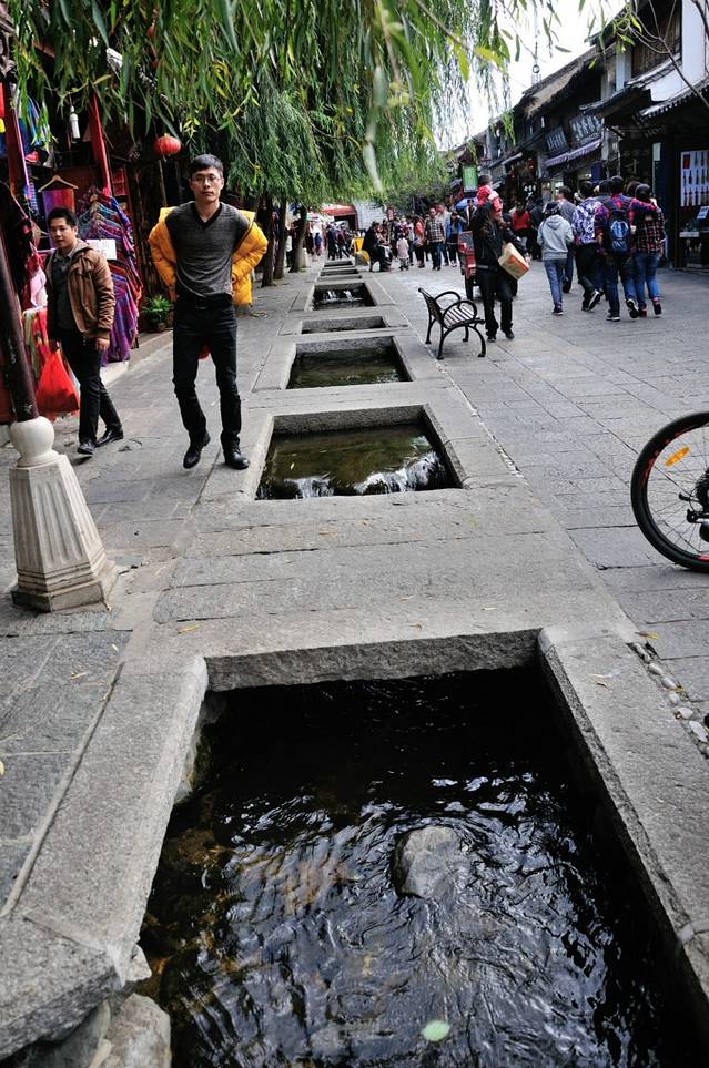 走进丽江彩石铺成的古老街道,漫游镇北商业中心四方街,便见河渠流水淙淙,河畔垂柳拂水,门前架桥,或屋后有溪,街头巷尾无数涓涓细流,穿墙绕户蜿蜒而去。这股股清流都来自城北象山脚下的玉泉, 无处不在的小桥流水