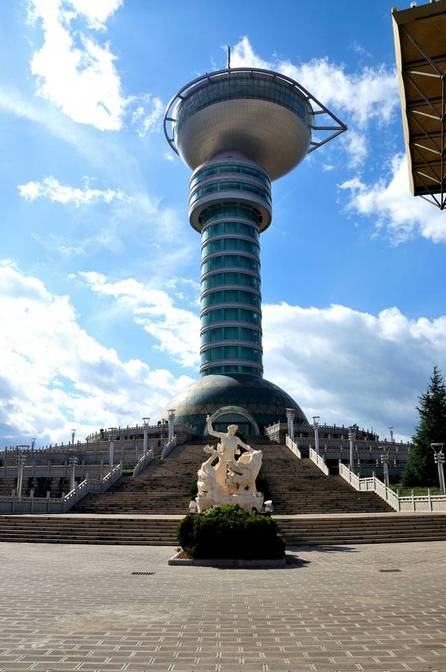 跨进这个非常大的景区里,看到的是一个巨大的广场,这个高地起伏的广场在蓝色的天空下愈显恢弘大气