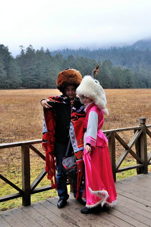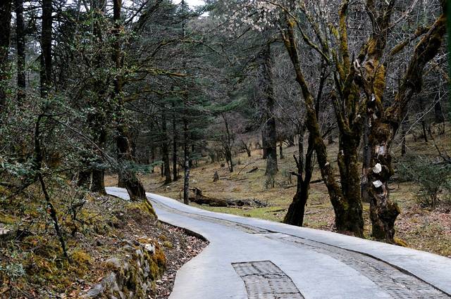 云杉坪是玉龙雪山东面的一块林间草地,约0.5平方公里,海拔3000米左右。雪山如玉屏,高耸入云;云杉坪环绕如黛城,郁郁葱葱。在云杉坪周围的密林中,树木参天,枯枝倒挂,枝上的树胡子,林间随处横呈的腐木,枯枝败叶,长满青苔,好像千百年都没人来打扰过,就像一个天然的乐园。