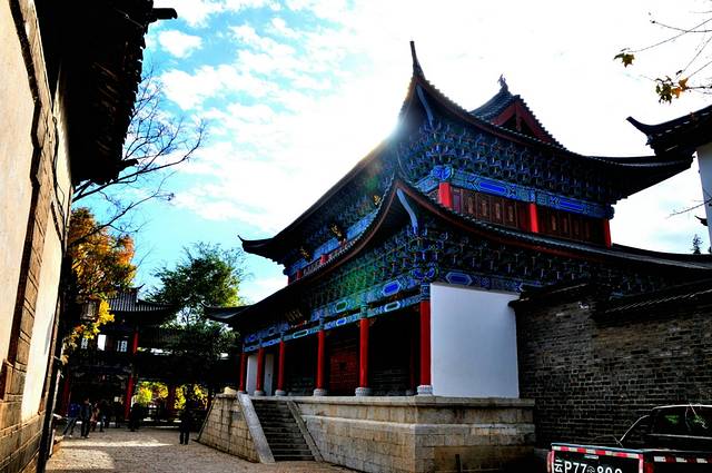 古城内的木府原为丽江世袭土司木氏的衙署。五凤楼始建于明代万历二十九年(公元1601年),楼高20米。因其建筑形制酷似五只飞来的彩凤,故名“五凤楼”。没有进去,外面拍了照片。
