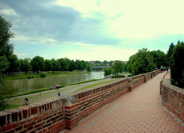 多瑙河岸边保留有一段城墙,城墙东端直达连接新旧城区的大桥。