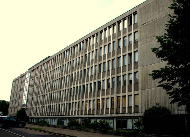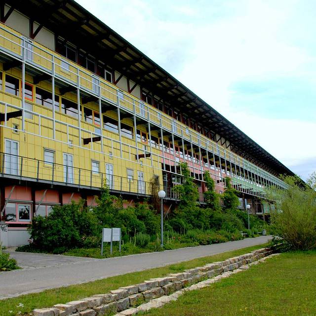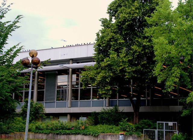 住处是乌尔姆大学的宿舍,在半山腰。山顶实际是个好大好大的平地,乌尔姆大学就在那里。从建筑看其貌不扬,但内部是全木结构,因此还得过环保奖。大学医学院很有名。
