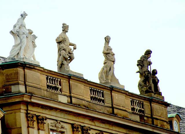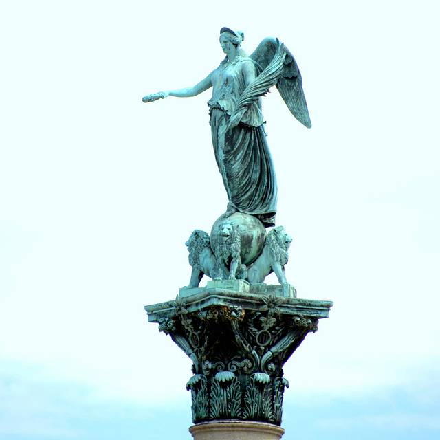 广场的西北角矗立着玛丽亚纪念柱,柱的顶端有金色的圣母玛丽亚雕像。