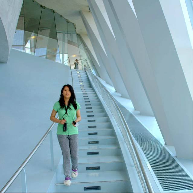 展区之间即楼层间有精巧设计的楼梯。缓缓地走在这样的楼梯过道上,也是种享受。