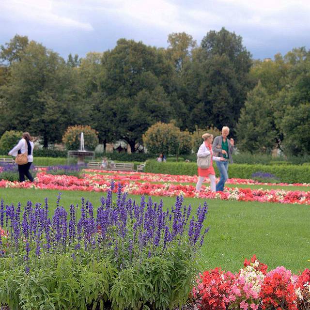 由新王宫左侧后一路向北延伸,全是宫殿花园范围。自新王宫左侧起至中央火车站站前马路止是宫殿花园的下园;(中央火车站的东边是宫殿花园的中园。由中园向北延伸数公里直到内卡河,与玫瑰石动物园相连,是宫殿花园的上园)。
