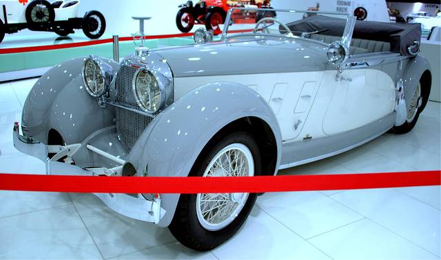 本款车是博物馆镇馆之宝中最为著名的一款。这款车全世界仅有几辆,现在的市值超过千万欧元,但是没有收藏家愿意出手,因为她实在太稀有、太经典了