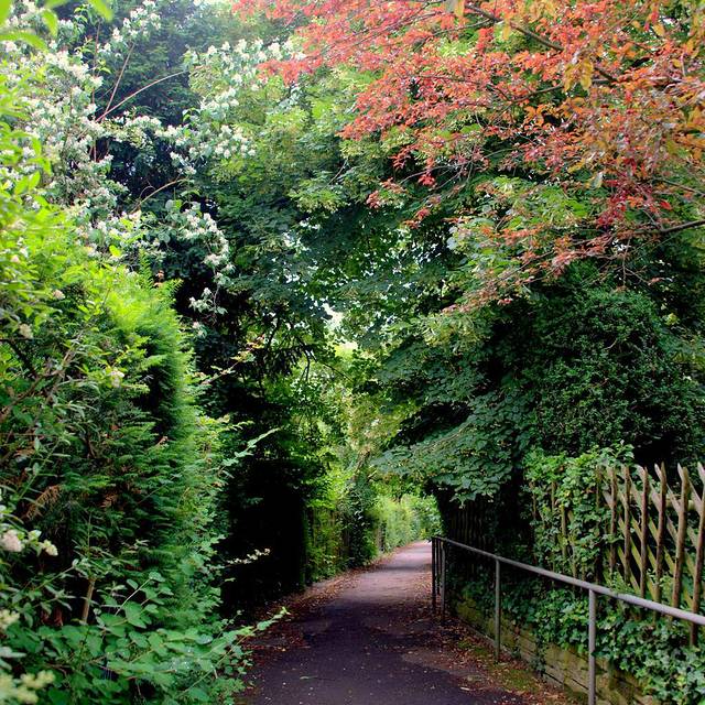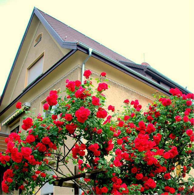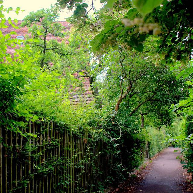 小路中间有一幢童话世界里的小屋,我常会驻足流连唏嘘一番。小路上常洒落有熟透了的李子和大樱桃。