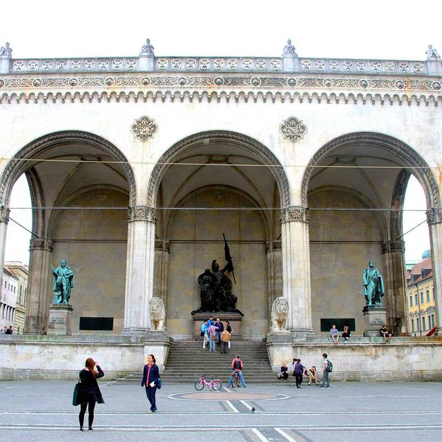最后我们来到了慕尼黑市内最大的景区:广场中心是巴伐利亚国王马克思—约瑟夫一世的雕像,1818年他颁布了德国第一部宪法。两座高大雄伟的石狮,护卫着通往皇宫的大门。据说:抚摸其中一头石狮的背部可以给人带来财运。