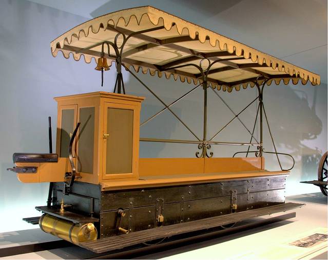 这应是最早的有轨机车,汽油发动机功率为2马力