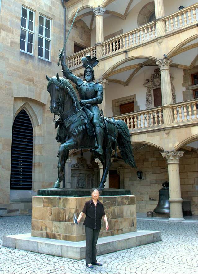 另一端有一尊符腾堡首任公爵埃伯哈德(Eberhard)骑着战马的大雕像,他也是蒂宾根大学的创始人。