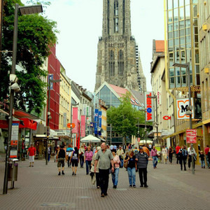 在乌尔姆对以大教堂广场为中心的几处名胜景点作一日、半日游,是件非常轻松而惬意的快事。大教堂在中央火车站的东面,车站坐西朝东,对面有一条步行街直通大教堂。
