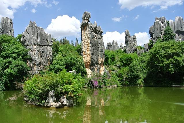 石林分为大石林和小石林,先由大石林进,步行十分钟可以看到“石林”那两个字,此处必须留影。之后就是沿着路线转悠了,一座座石峰就如利剑一般,矗立在哪儿,在里面穿梭就如在迷宫一般,石峰与水面分结合,仿佛在仙境一般,但也要担心迷路。在大石林里有一望峰亭,可以看见大石林的大部分景色,站在上面观看石林真的不由你不感叹大自然的鬼斧神工。