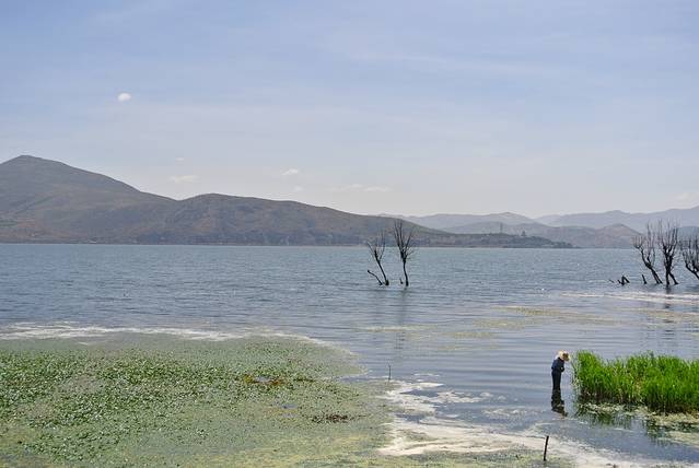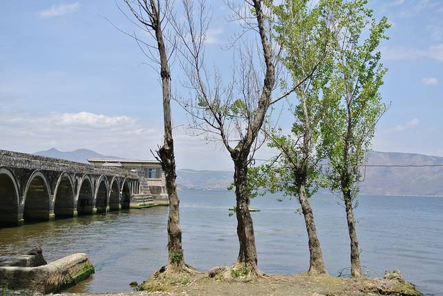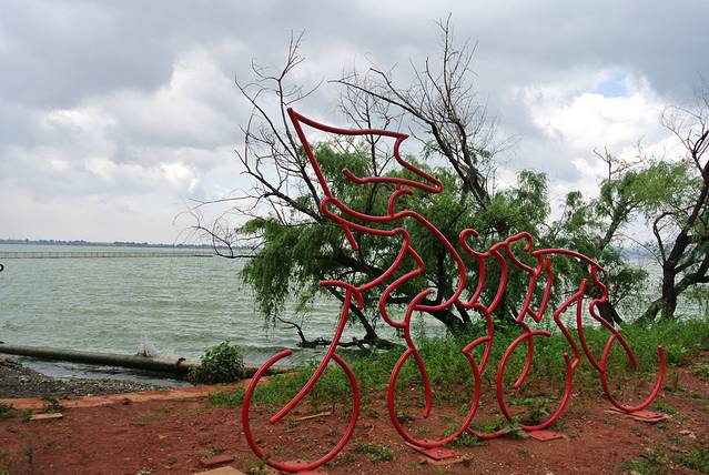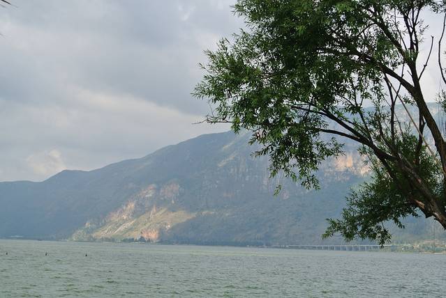 滇池是全国有名的脏湖,但是远观滇池还是很漂亮的,在海埂公园中漫步,有一人粗的桉树林,远处是峭壁、陡崖。滇池附近有多处码头,乘着快艇,欣赏着远处的景色,真是极美的。