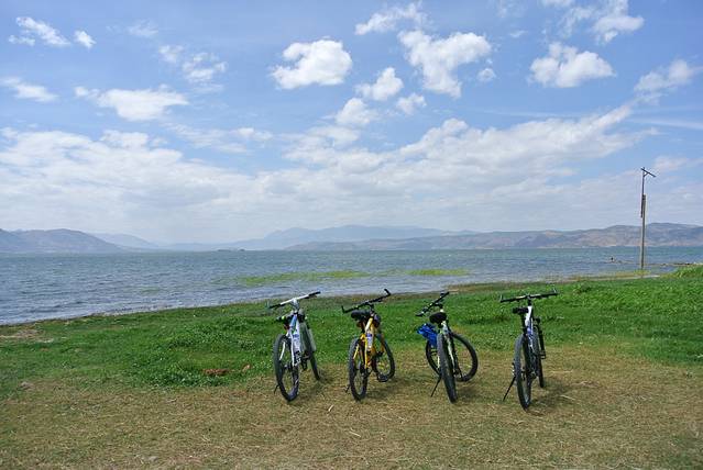 骑行洱海是整个旅途中是最有意思的一部分。沿着环海西路,身边就是美丽的洱海,不远处就是苍山,山麓处坐落着古城和村落,犹如画卷中一般。洱海、苍山、村落三者的结合,这才是大理最美的地方。只有在你停下脚步,坐在湖水旁,静静的遥望苍山、静静的聆听洱海,让自己融入这美丽的山水画中时,这样才能说你到来过大理。