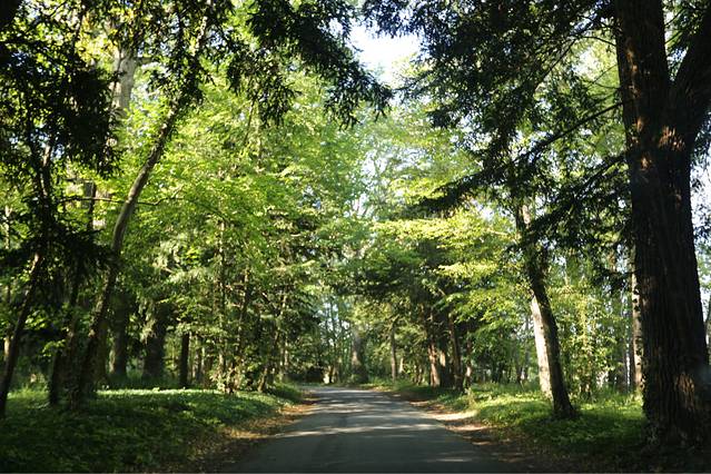 我们随着GPS一顿狂指,开到目的地,看到酒店的标示,开进去,一看。。。。一树林,当即觉得开错了,又开出来绕着酒店转了半圈,发现那树林是对的。。。