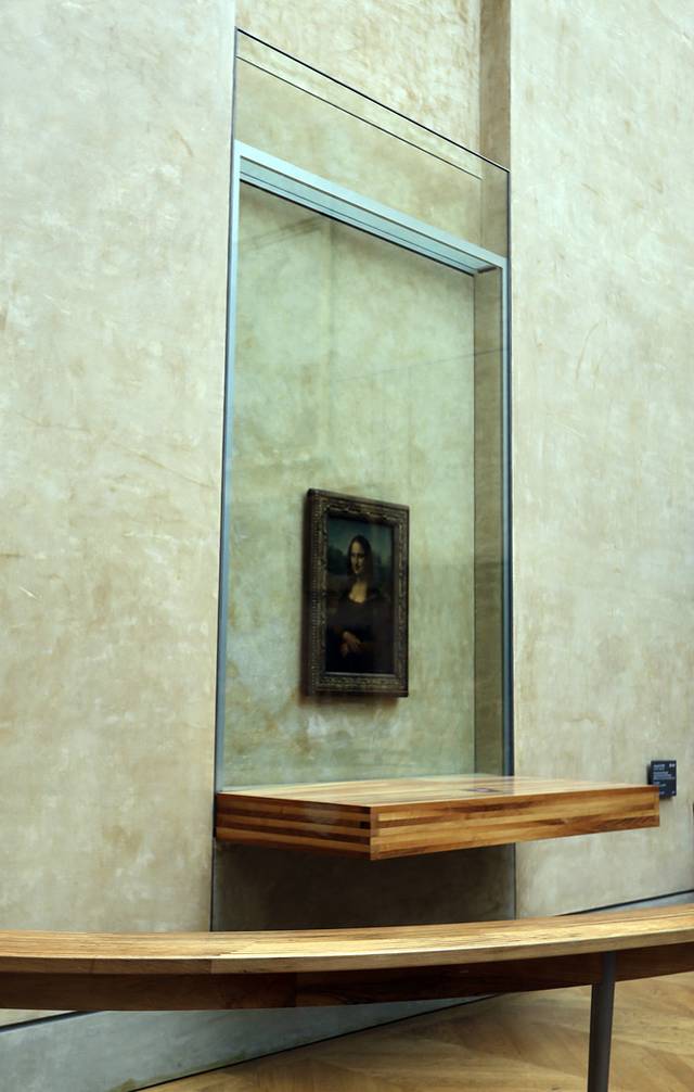在这幅巨幅油画的对面,就是大家熟知的达芬奇的《蒙娜丽莎的微笑》,话说我对非常非常著名的东西(需要排大队欣赏)都不是特别感冒,所以随便拍了个蒙娜丽莎的边边,我就走开了。