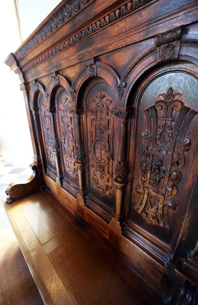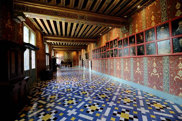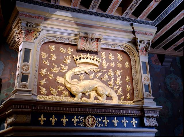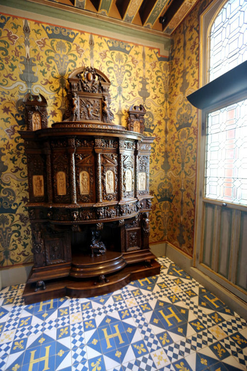 木质的雕刻在这座城堡里很多见,地上装饰着法国王室的标记和城堡主人的名字缩写“H”