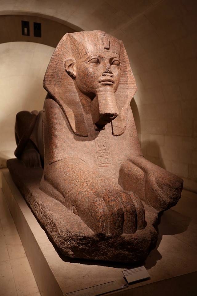 来到古埃及展区所在的叙利馆门口,第一个看到的就死这尊粉红色花岗岩狮身人面像,风化的部分给这尊神像带来了些许沧桑感