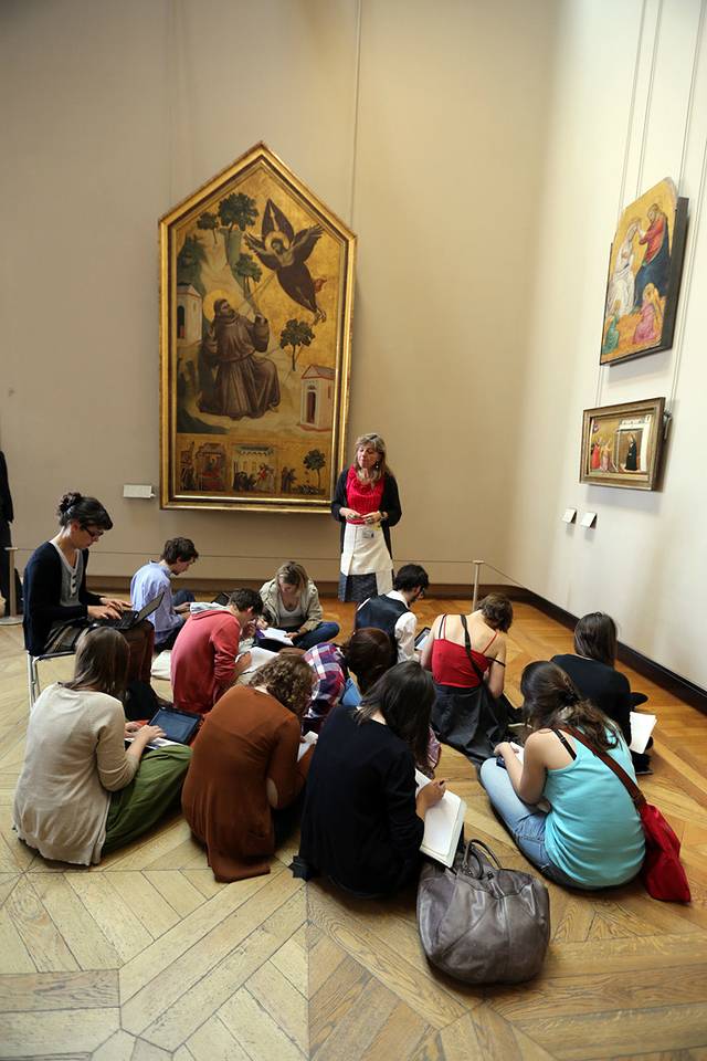 在卢浮宫有很多学生在这边上课,有的是小孩子,有的是大学生的摸样,这位老师在非常细致的介绍着学生们面前的一幅画。。。。巨认真,旁边的人潮涌动,他们完全置身事外!赞一个!