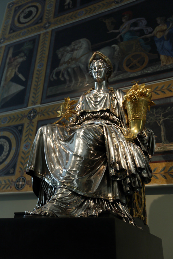 一尊亮闪闪的雅典娜,好像是用金和银制造而成的
