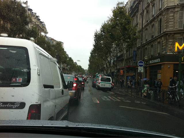 一通收拾之后,我们在巴黎的大道上,巴黎郊区就体现了大城市的优越性,那车堵的!那叫一个漂亮!