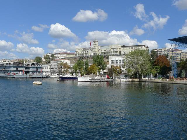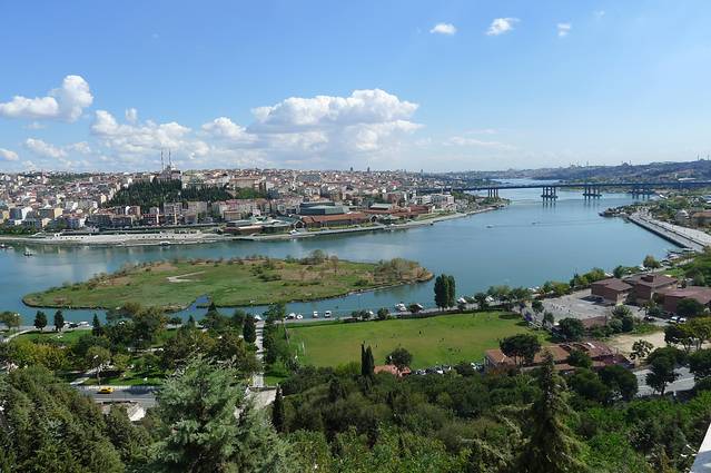 金角湾(Halic)位于博斯普鲁斯海峡南口,将伊斯坦布尔的欧洲部分分为两半。这个狭长的港口是伊斯坦布尔港的主要部分,也是历史上拜占庭帝国和奥斯曼土耳其海军和海运的主要港口。