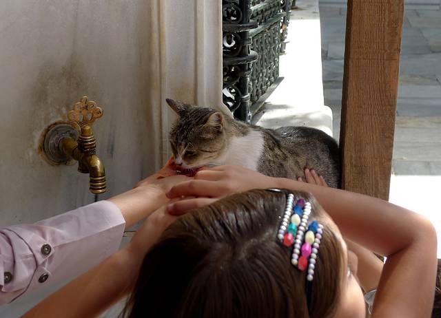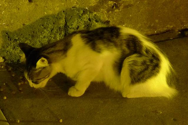 从蓝色清真寺出来,已经暮色重重。清真寺门前,一只猫咪正在大快朵颐,享受美食,我们的下一站当然也是向美食进发。