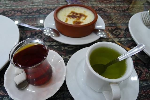 先点了土耳其最流行的红茶,薄荷茶和米饭布丁。