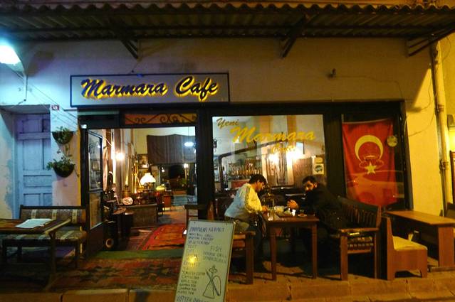 我们随意选择了一家餐馆,典型的伊斯兰风情,彩色的灯和瓷盘,还有奥斯曼土耳其王室最喜欢的郁金香花纹的装饰画。