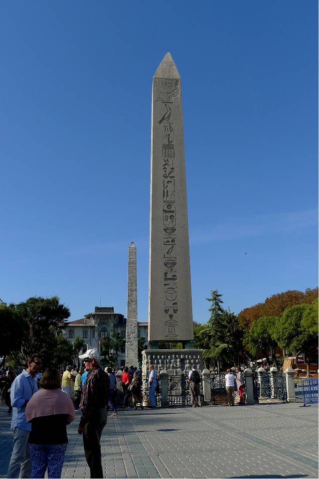 奥多西方尖碑是伊斯坦布尔最古老的遗迹了。这个本来位于卡纳克神庙的图特莫斯三世法老的方尖碑在公元390年由迪奥多西皇帝带回来,并在碑顶加上了皇帝本人和他家人的浮雕。