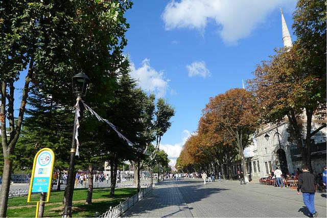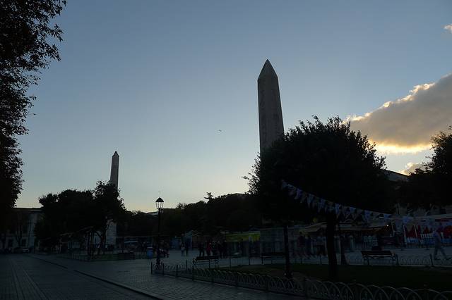 向着圣索菲亚博物馆进发,我们首先来到的是跑马场。作为东罗马帝国的皇帝们和奥斯曼土耳其苏丹们欣赏赛车的地方,跑马场在几千年来蓝色和绿色两大战车队的竞争中经历了各种暴力,战争,鲜血,阴谋的洗礼,冷眼旁观芸芸众生的挣扎和帝国的兴衰,如今剩下的,只有那几座高耸如云的方尖碑了。