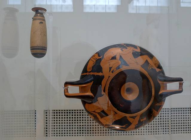 描绘着运动场面的泛雅典娜安佛拉陶罐中盛着雅典的圣橄榄树上取得的油,是泛雅典娜节的运动汇优胜者的奖品。