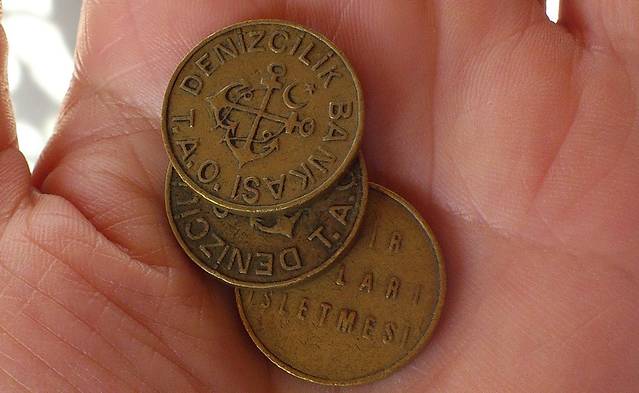 坐渡轮用的币,单程的,塞进闸口的机器就可以进入码头候船了。记不太清楚单程多少钱了,大概4里拉左右吧。