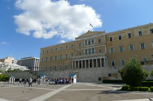 仪式结束,来看看昨天都没好好看看的国会大厦(Parliament)。这个在19世纪由巴伐利亚设计师设计的建筑本来是希腊的王宫,1843年,希腊的宪法就是在这个宫殿的阳台上被颁布的。1935年,王宫成为国会所在地。