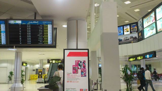 多哈机场,航站楼之间距离很远,摆渡车有几个停靠站点,要注意听车里的广播。