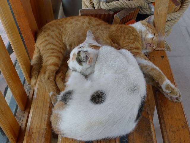 猫咪们占据了小小的候船厅里的三把椅子之一,被宠爱着的它们生活在这个有爱的城市确实是幸福。