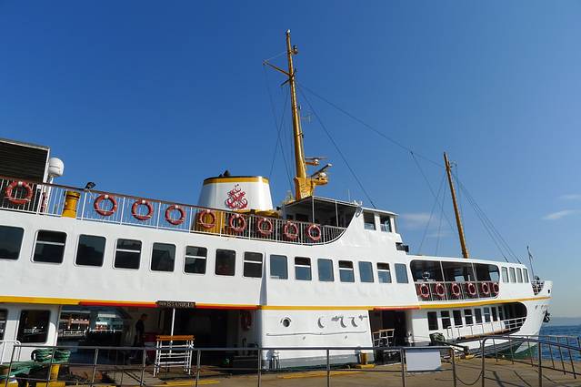 渡轮是伊斯坦布尔最重要的交通工具之一,它们在峡湾的两岸分别一站一站停靠,把人们带到他们想去的地方。还有半个小时才开船,我们也悠闲地在码头上休息。