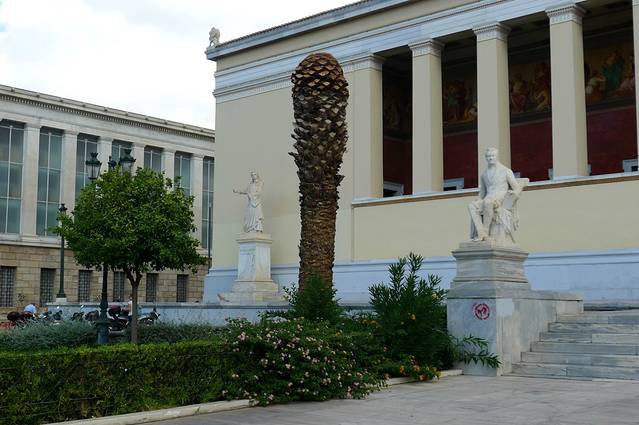 这一天是希腊行程的最后一天,也是个值得纪念的独行日。小L和小X已在凌晨返回美国,我这个独行侠吃过早餐便朝雅典“大学街”上的新古典主义三部曲出发。