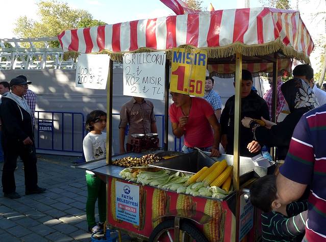有玉米棒,水煮和烤的两种口味,1.5-2土耳其里拉(1里拉兑换人民币3.3元的样子)。比较无敌的是老板会给你撒上盐,不想要的同学请及时阻止。