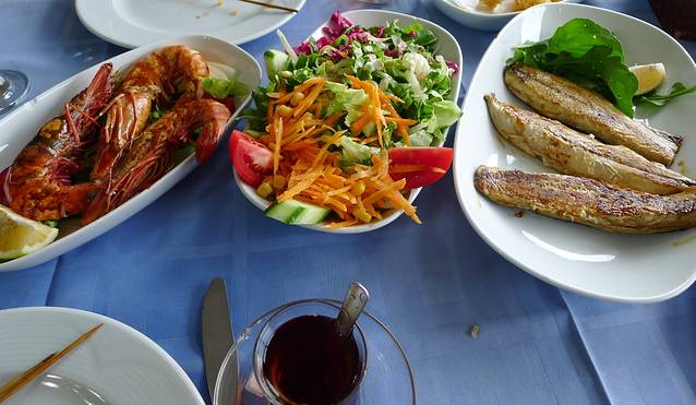 土耳其美食很出名,我们当然不想放过,点了特色的薄饼夹羊肉,烤鱼还有号称女士烤肉饼的牛肉,一上来就傻眼了,好大的分量啊,我们哪可能hold得住三份……