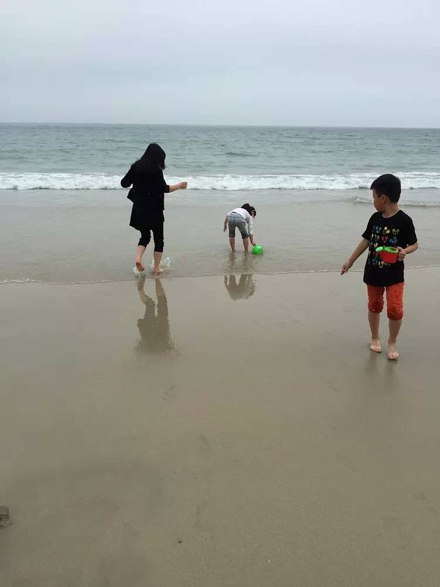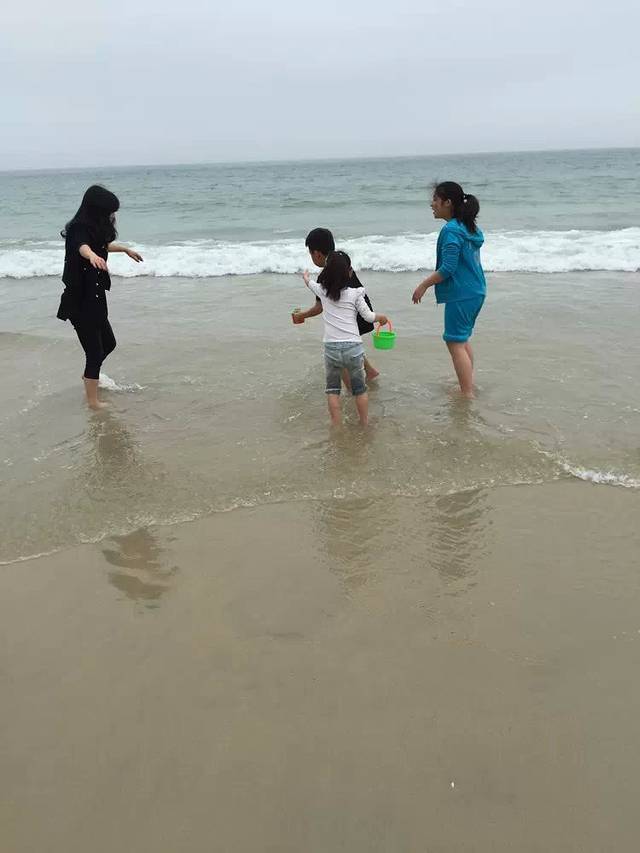 今天终于来到孩子们盼望已久的海边,虽然海水有点凉凉的,孩子们还是玩的好高兴,海边人也比较多,大过年的出来玩的人还不少呢!