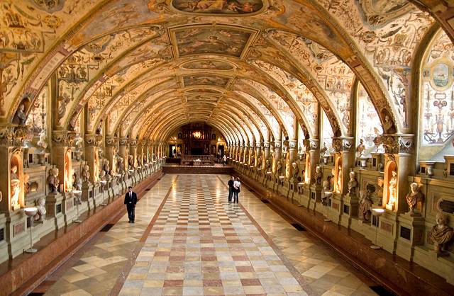 巴伐利亚皇帝的居所,现在改建为博物馆,向游客展示了历任居住于此的国王、选帝侯们的寝宫,国王觐见厅,餐厅,肖像室等,可以看到古代统治者生活工作的场所。而最为引人入胜的要数曾作为阿尔伯特五世收藏放置古代雕像的古玩陈列室(Antiquarium)。
