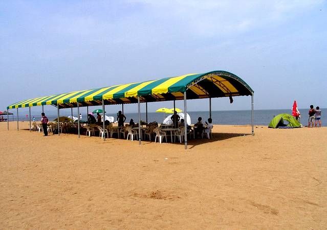 这片沙滩沙质金黄、滩软沙平,浴场水质也较好,娱乐项目丰富