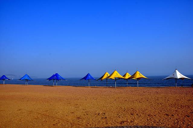 中国北方最大的也是唯一的天然灯光浴场,这里沙质金黄,滩软沙平